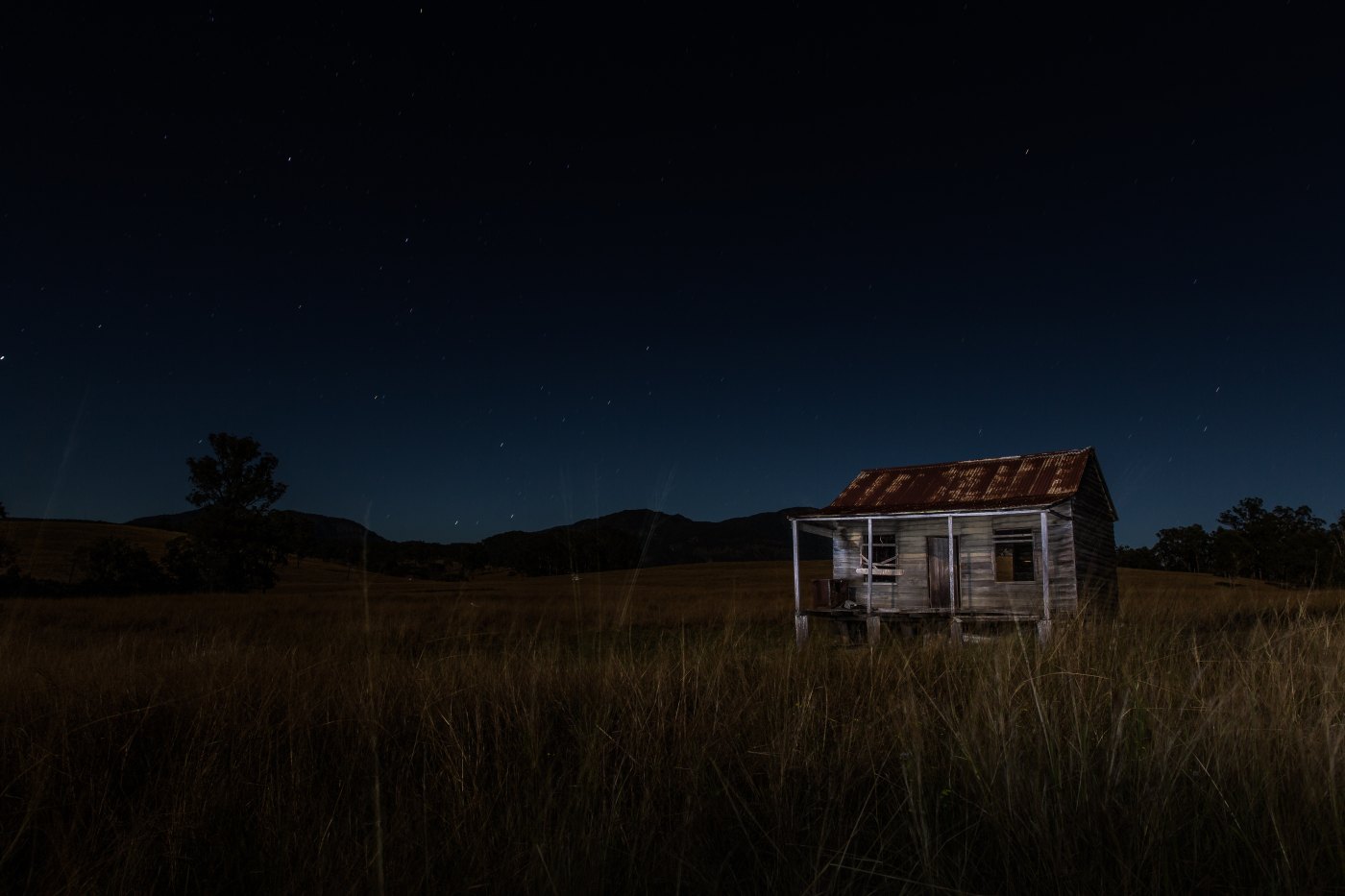 He found a spot where two stones interrupted the flow of the creek. He jumped from the bank, looked closely. Could see the stars now through the break in the trees. The current flowed around him like it always did. Yes, there. A stray pillar of smoke to the southeast.